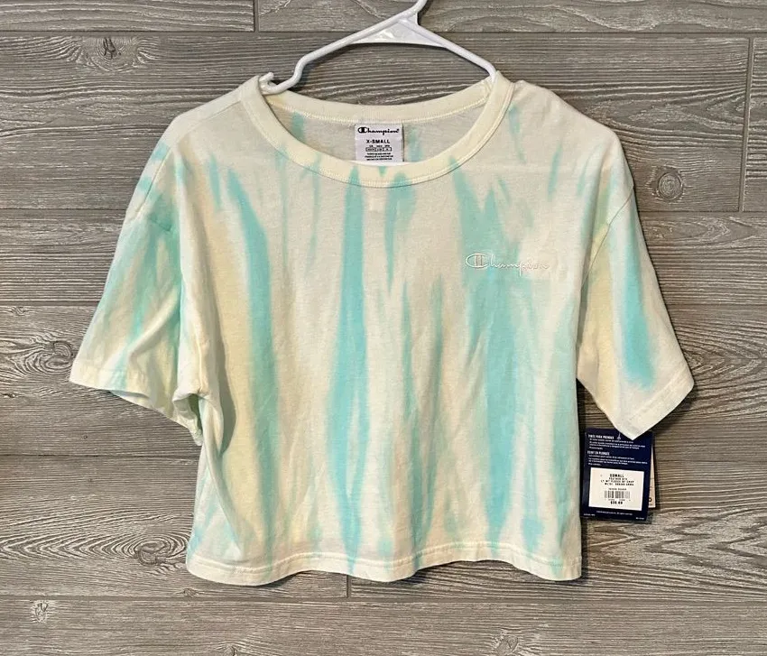 Champion tie dye crop top XS new with tags blue and cream