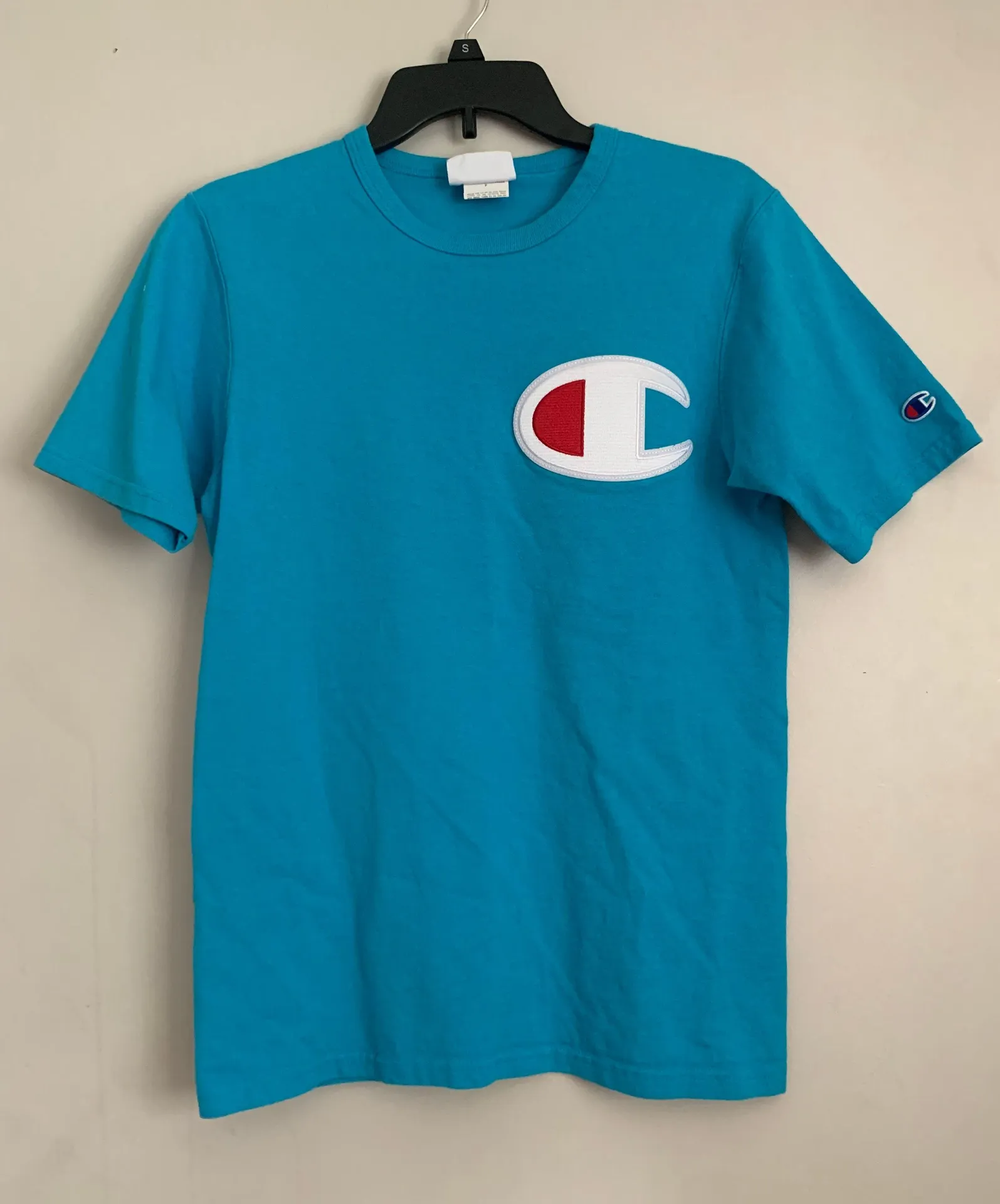 Bright blue Champion T-Shirt. Big logo on the front. Size small. No signs of wear or tear.