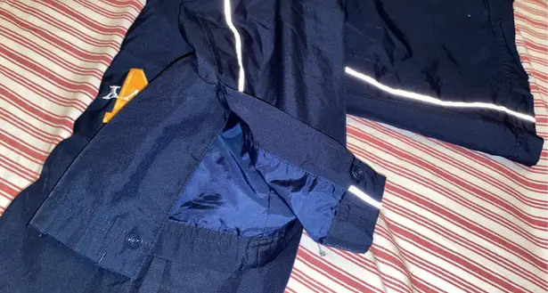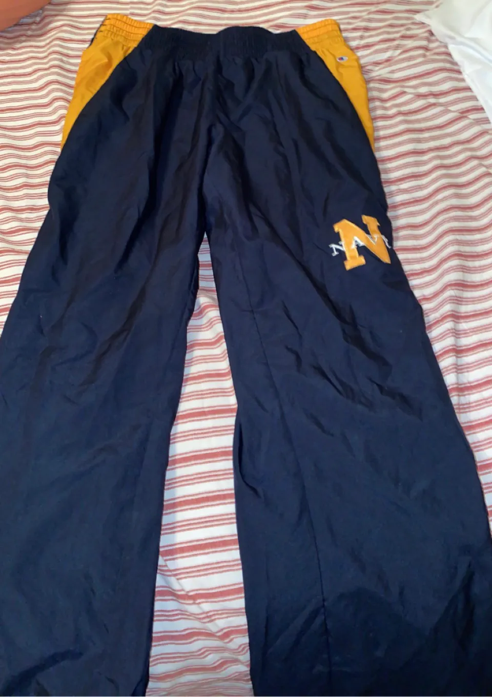 Champion USN track pants. They button up the sides of each pant leg and have a reflective strip down... Show more