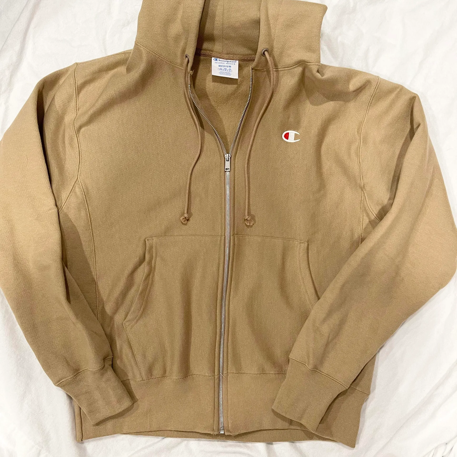 Tan/beige Champion reverse weave zip up sweatshirt, size Medium, worn once, great condition