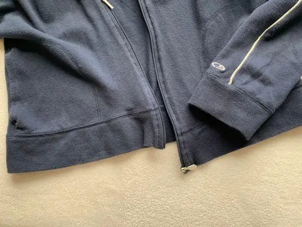 navy hooded jacket! super cute staple hooded jacket - i love the white striping details. some wear f... Show more