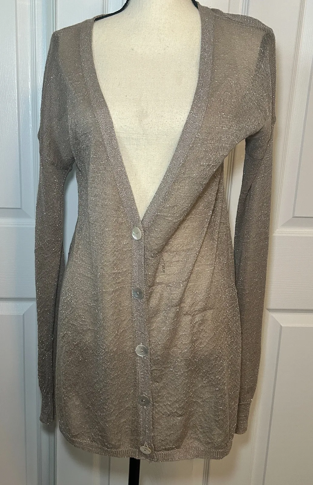 Chan Luu India Lightweight Metallic Boyfriend Cardigan Women's Large Beige/Warm toned metallic Meas... Show more