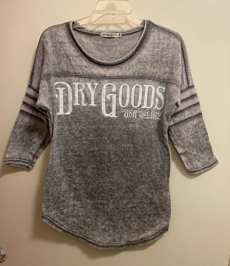 Heather gray sweatshirt with a cozy feel. Perfect for casual outings. Excellent condition with no wear, stains or damages Pit to pit is 19” across for bust measurement of 38” Length 28” 3/4 sleeves 12” long 65% polyester / 35% cotton Very soft with cozy fleece inside