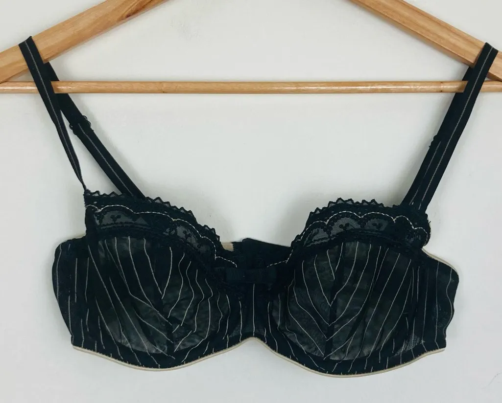 Chantelle made in France sheer black and white pinstripe balconette bra. 32D Size undefined - $36 - From Ann