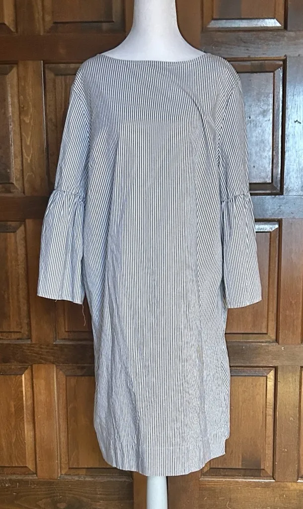 Chaps Grey And Whited Striped Bell Sleeves Shift Dress Size XL Casual Summer - $17 - From Christie