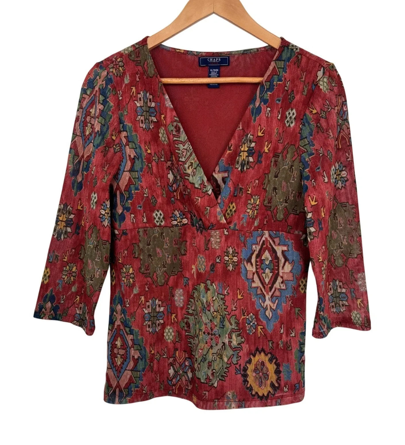 The Chaps Top Woman's XL in Orange Red features a vibrant Aztec design, perfect for casual or travel... Show more