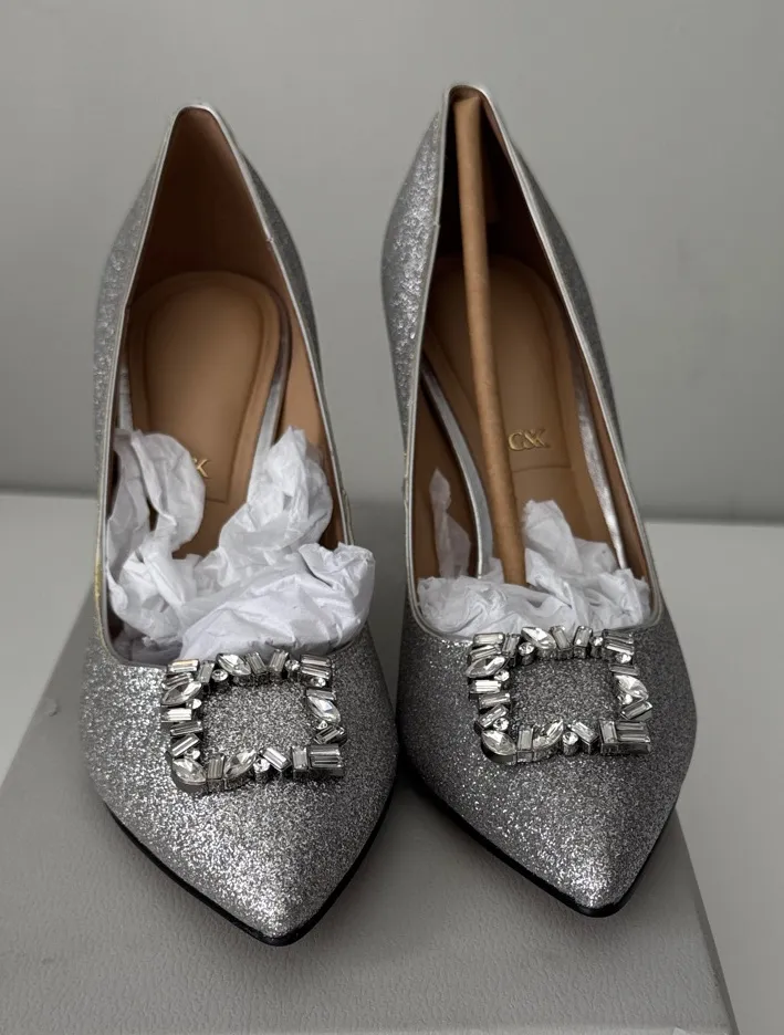 Charles & Keith THE BRIDAL COLLECTION Glitter Gem-Embellished Pumps Size 7 New Silver - $90 New With Tags - From Kegan