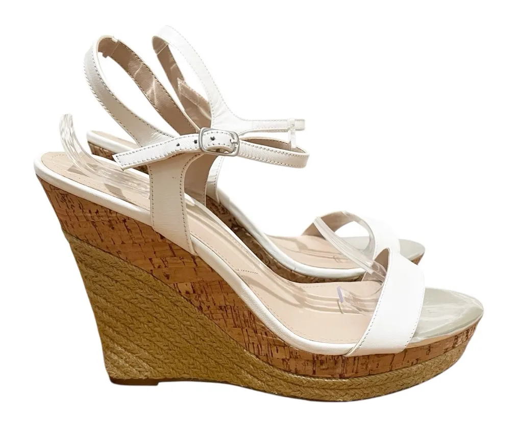 Charles by Charles David “Arizona” white leather wedge sandals featuring a cork and braided jute platform, open toe, and adjustable ankle strap. Elegant yet versatile design perfect for summer dresses or casual wear. Details: • Style: Arizona • Color: White • Size: Women 11M • Material: Leather upper, man-made sole • Heel Height: Approx. 4.5” • Platform Height: Approx. 1.25” • Condition: Excellent pre-owned condition, comes with box 5 star seller! Will ship same or next day (except for weekends) Bundle to save!