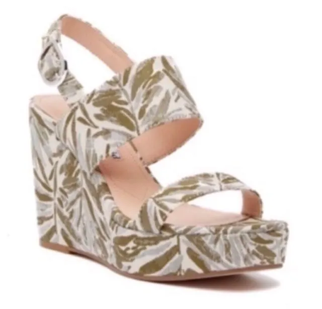 CHARLES DAVID ‘Jordan’ Green Leaf Pattern Wedge Platform Sandals - Size 8.5M - $249 Retail Exotic... Show more