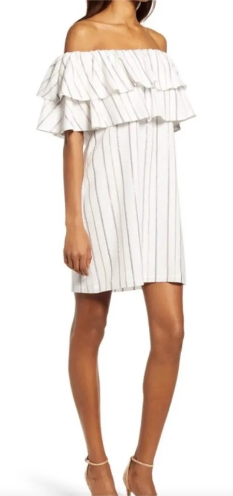 CHARLES HENRY Metallic Stripe‎ Off-the-Shoulder Popover Dress Ivory White Size M - $30 - From Leslie