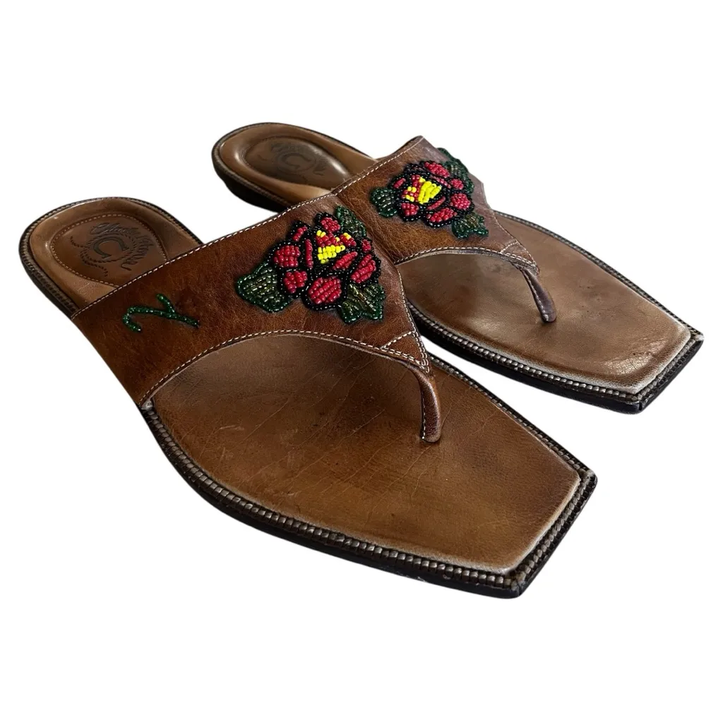 Charlie 1 Horse Women’s Thong Brown Leather Beaded Sandals Artisan 8B Size 8 - $43 - From Jesse