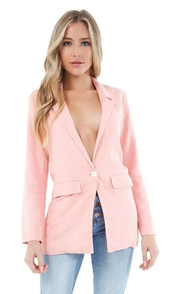 In the most beautiful blush linen blend, this lovely blazer goes with everything. Layer it over a floral dress, style it with denim and a white tee or wear it with the coordinating Halee pant for a polished work look. Medium weight No stretch Lined Opaque Relaxed fit Slimline single-breasted blazer Single button fastening White button Twin front flap pockets Longline hem 30% Linen 70% Rayon Color: Pink Lemonade MSRP: $156.00 Size: Womens 4 Measurements taken flat across, Bust 18 in / 46 cm Hips 19 in / 48 cm Length 25 in / 64 cm Waist 15 in / 38 cm Condition: Pre-Owned Good Flaws: pocket corners have pulled slightly. Sold as-is Tags: revolve, fp, outerwear, essentials, neutrals, fashion, basics, coat, down, ski, cabin, fall, lodge, skiing, snow, rain, blazer, jacket, revolve, business, work, casual, everyday, style, moto, biker, neutral, coat, winter, fall, vegan, organic, sustainable, shopbop, Valentine’s Day