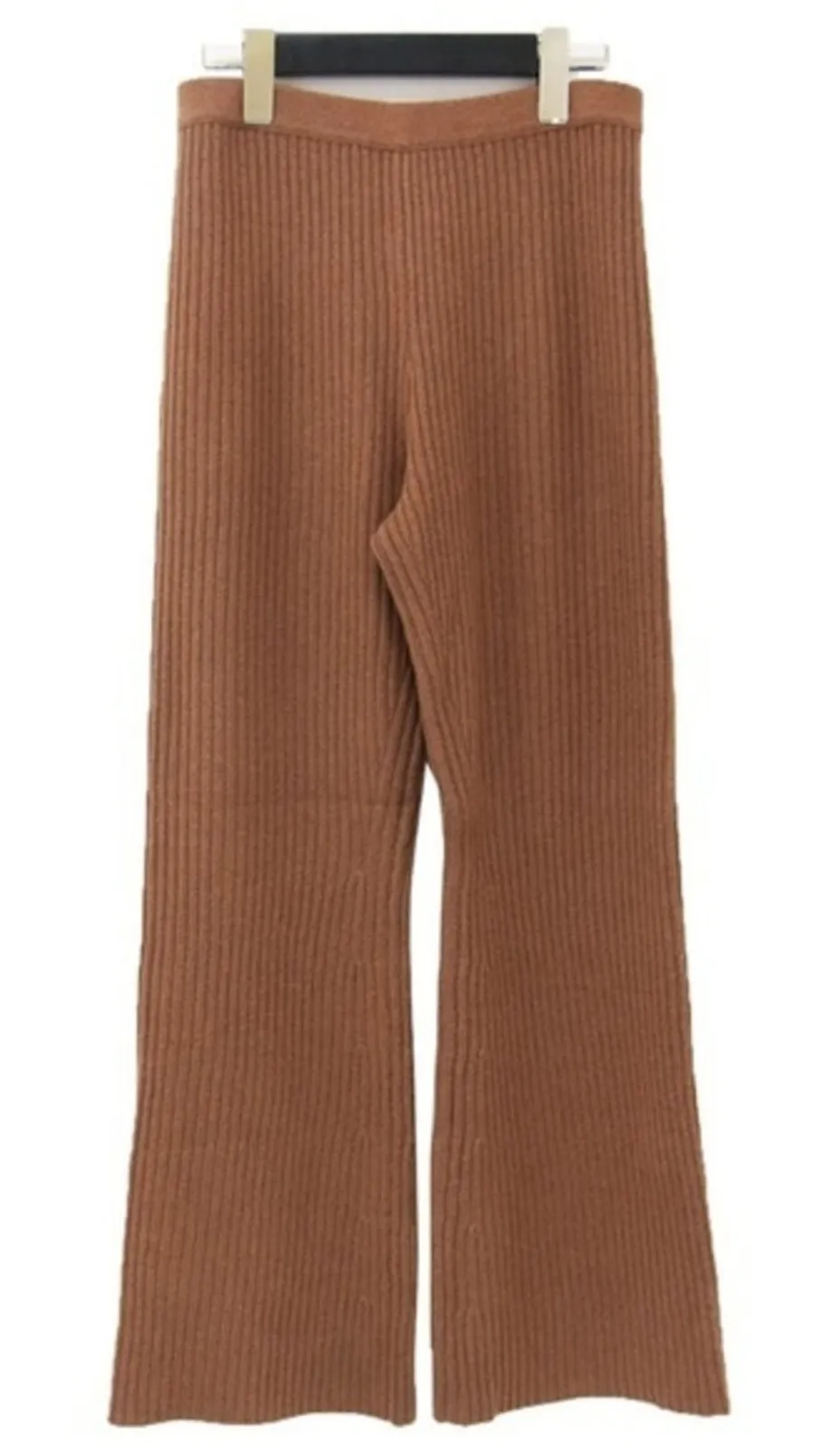 Soft, stretchy sweater ribbed knit pants from Charlie Holiday in a warm brown tone. Designed with a comfortable elastic waist and subtle flare leg, these pull-on pants are easy to dress up or down. A versatile neutral piece for casual, travel, or elevated everyday wear. Condition: New with tags. Details: Ribbed sweater knit fabric Pull-on elastic waistband Flared leg silhouette Mid to high rise Color: Brown / Cinnamon Designed in Australia Tagged size: AU/UK 10 | US 6 | EU 38 Organic cotton 45%, Acrylic 47%, Spandex 8% Cold machine wash. Lay flat to dry. Do not tumble dry. Approximate flat measurements: Waist: 12” Rise: 14” Inseam: 31” ribbed knit pants, flare pants, pull on pants, stretch knit, minimalist style, neutral wardrobe, casual chic, modern basics, australian brand, lounge pants, loungewear, cozy pants