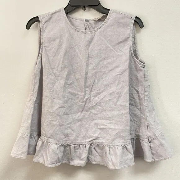Preloved with flaw— see photo no. 2 (hole on the left shoulder) Linen & viscose blend. Open back. Button closure. Summer breathable top. See all photos for close up details and measurements.