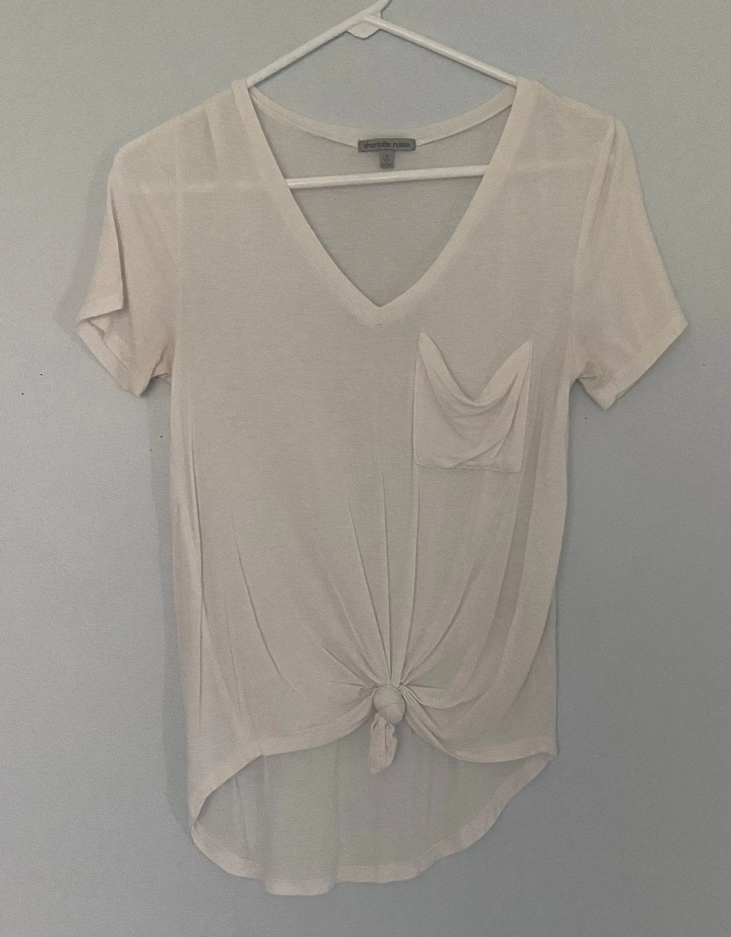 Great condition, super comfy, basic white tee, a bit see through, fits true to size