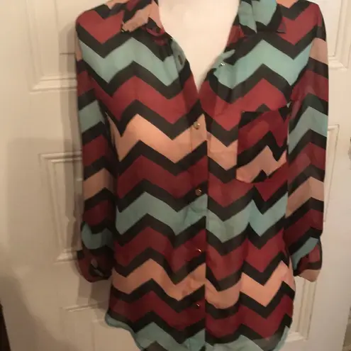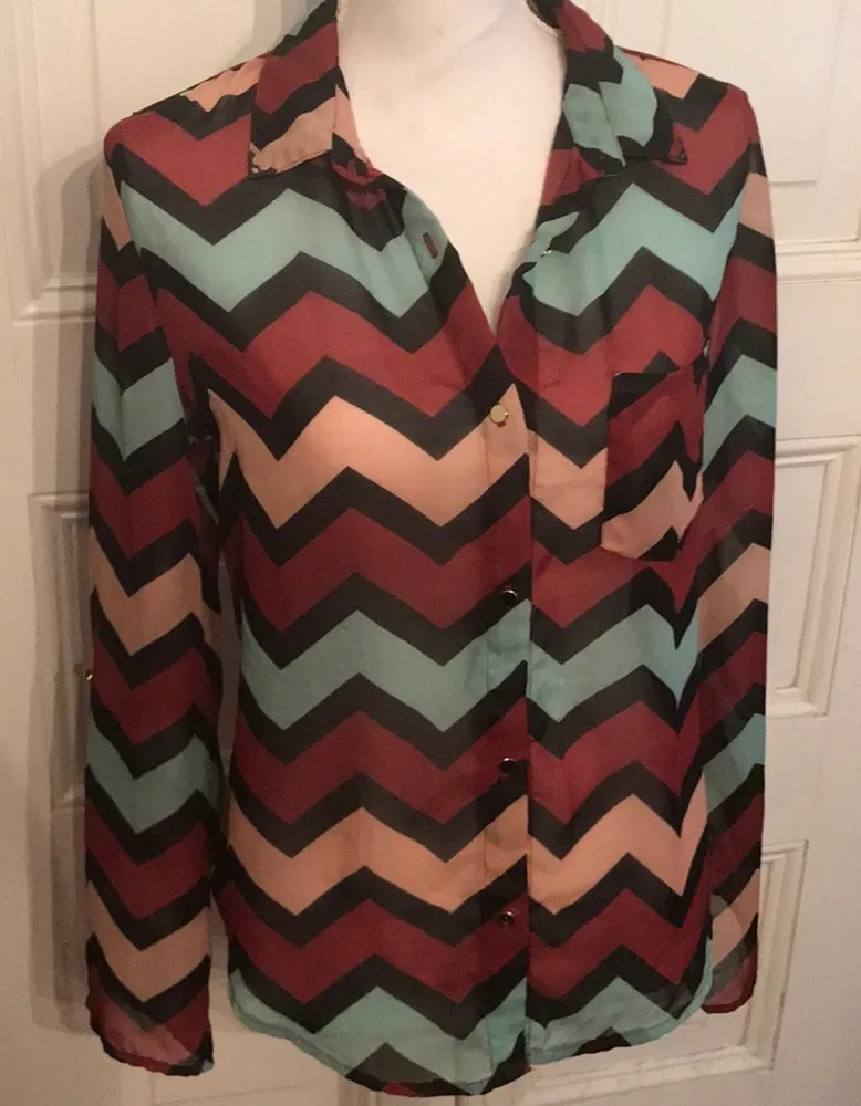 EUC Charlotte Russe Sheer Chevron Top Size Medium. The first photo shows it with the full long sleev... Show more