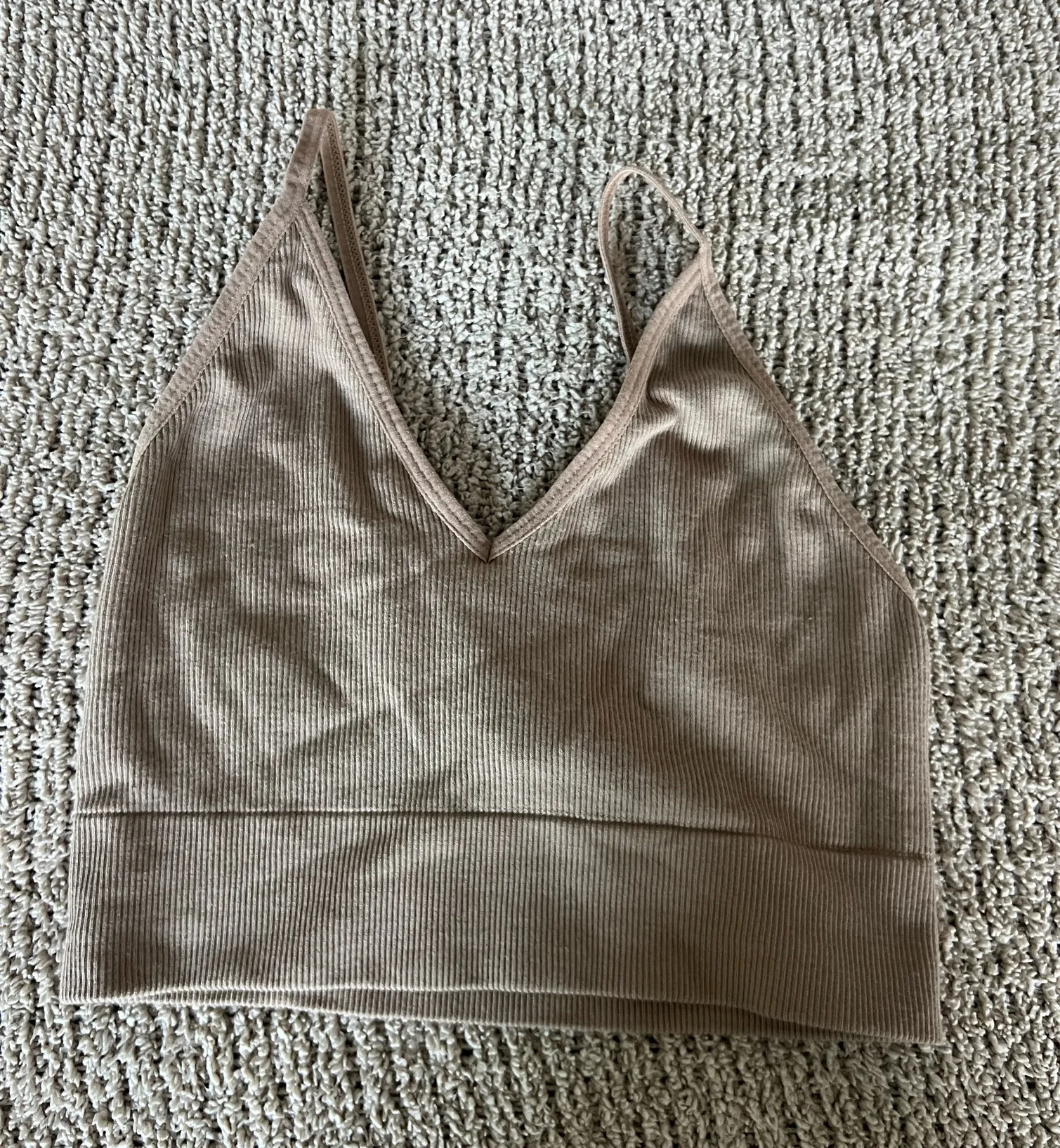 Experience comfort and style with this tan ribbed bralette. Perfect for everyday wear.