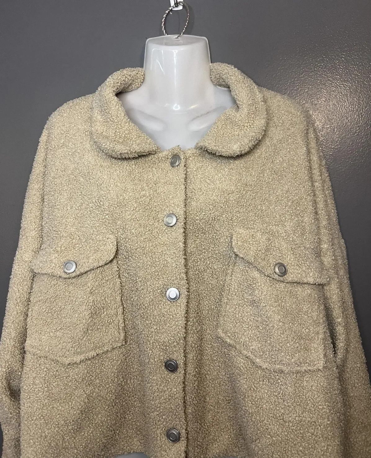 Gently worn sherpa fleece with soft texture throughout. Fabric clean and intact, snaps and pockets f... Show more