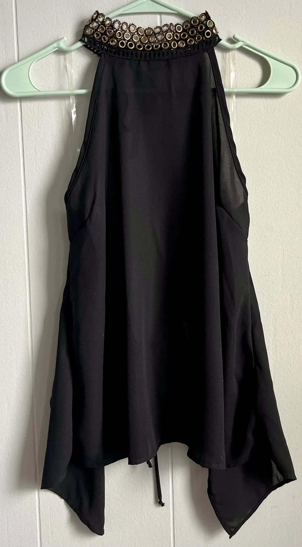 BRAND NEW WITH TAGS Charlotte Russe Sheer Halter Top Size: Small Color: Black and Gold - Metal ring... Show more