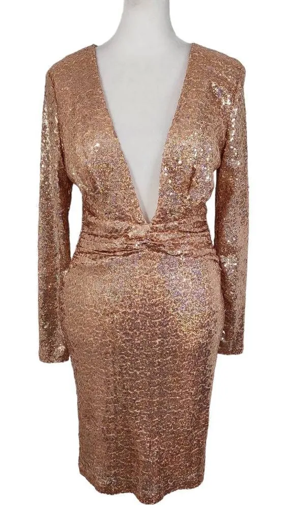 Charlotte Russe pink fitted dress with plunging neckline and stunning sequins. Same-day shipping for... Show more