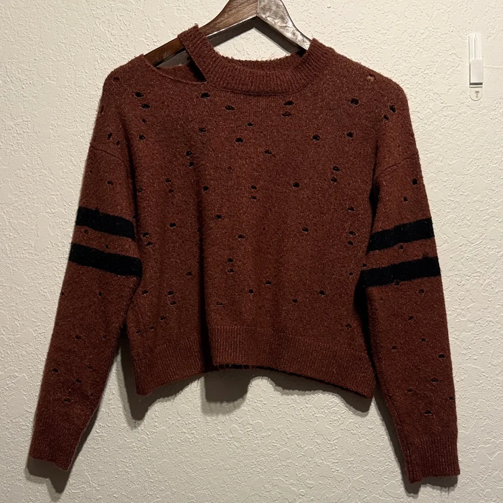 This bold and edgy Charlotte Russe cropped sweater brings grunge-inspired style with its rugged, int... Show more