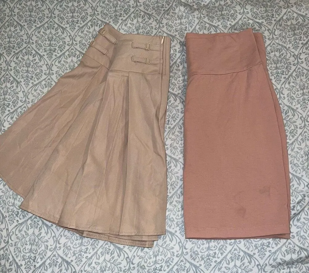 Schoolgirl skirt and pink pencil skirt bundle set size L 2 skirts large Khaki school girl uniform... Show more