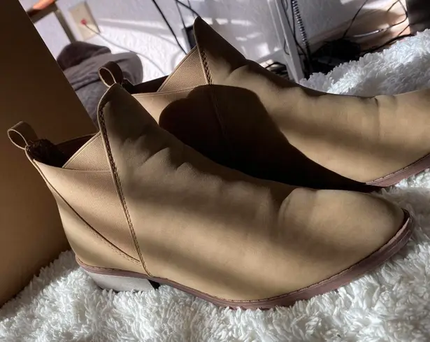 Tan suede low cut booties super comfortable and will spice up any fall outfit box included!