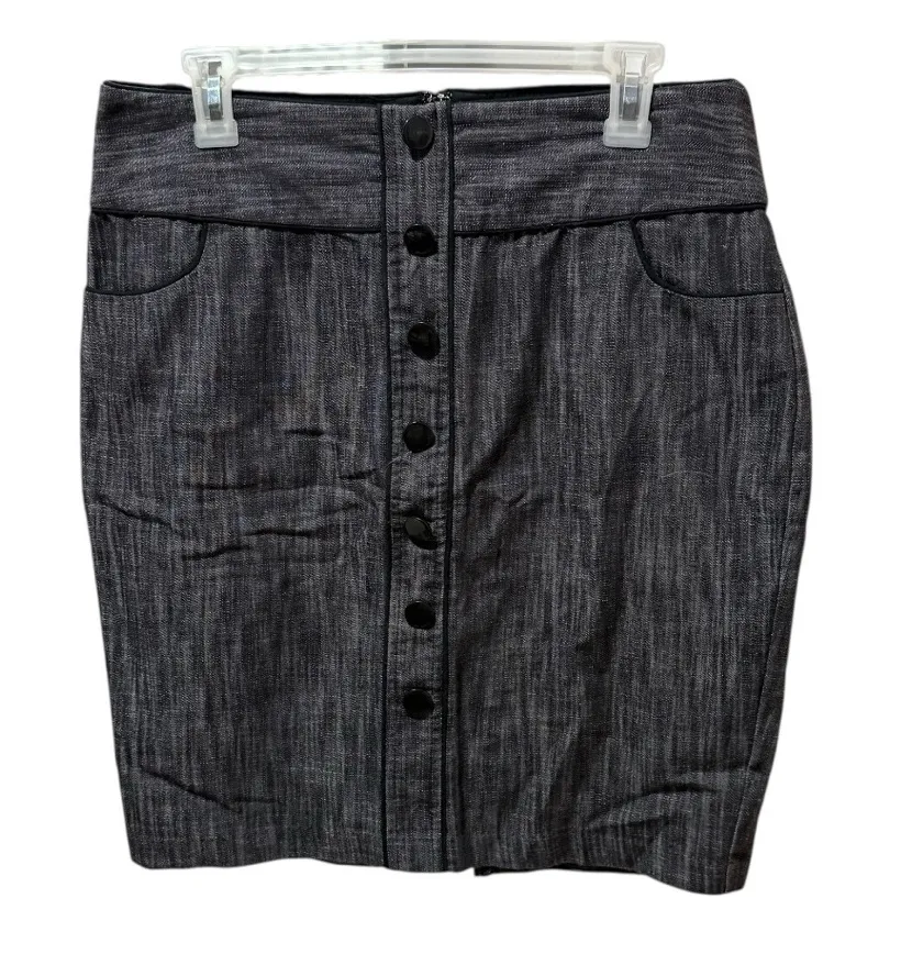 Sleek black pencil skirt with button-down front. Ideal for chic and versatile styling.