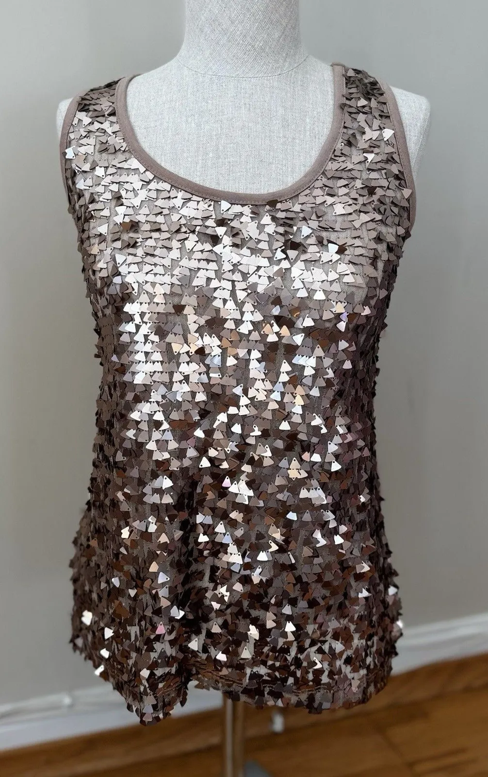 Charlotte Russe Y2K Sequin Tank Top. Color Taupe-ish Rose Gold. Size Small. Made in USA. Measurement... Show more