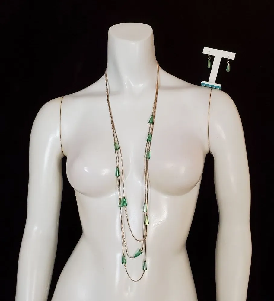 Charming Charlie gold colored three-layer necklace with green beads with matching earrings. Most je... Show more