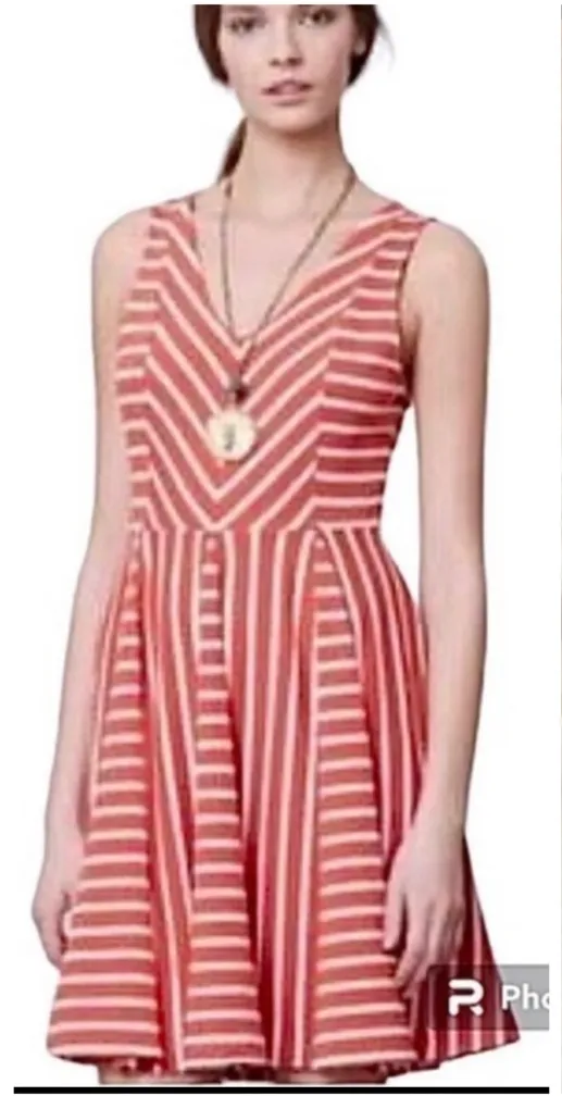 Charming Charlie Rose Pink and White Stripe Fit & Flare Dress. ~ stretchy dress features diagonal st... Show more