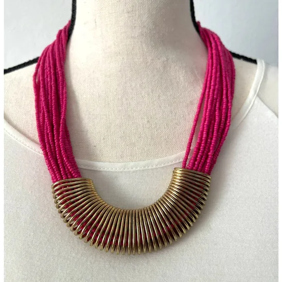 Charming Charlie Hot Pink Princess Necklace w Gold Accent Multi Layer Jewelry