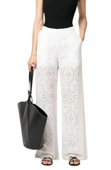 Size XS waist: approx 11.5” Length; approx 42” Inseam: approx 31” Excellent condition With one minor dirt spot on hem Banded waist Two side slit pockets Back zip closure Partially lined Allover eyelet detailing Tags: summer, designer, vacation, boho, bohemian, beach, beachy, Coachella, concert