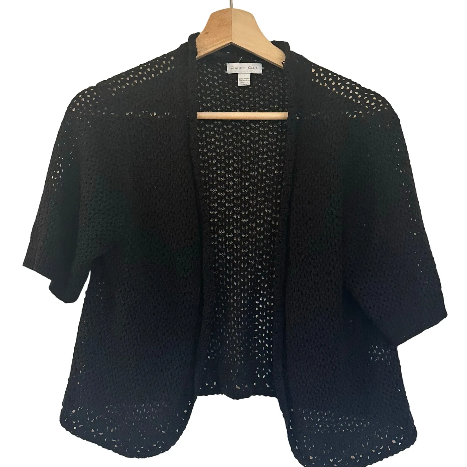 Black Short Sleeve Open Front Knit Cardigan Open Knit Short Sleeve Cardigan Size L - $25 - From Joi