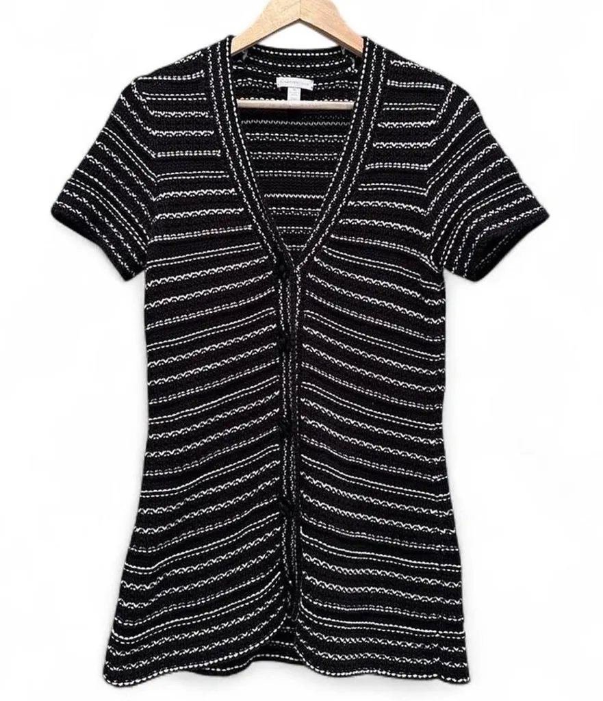 Charter Club Black White Crochet Sweater Cardigan Medium Short Sleeve Great, pre owned condition.... Show more