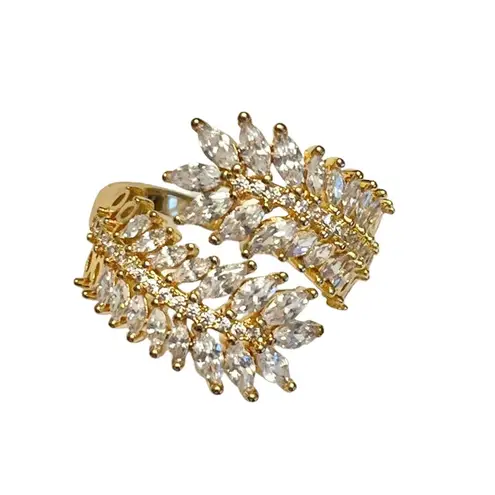 You Are Looking To Buy: NEW Gold Tone & CZ Marquis Baguette Bypass RING 5.5 Floral Wrap Cocktail Di... Show more
