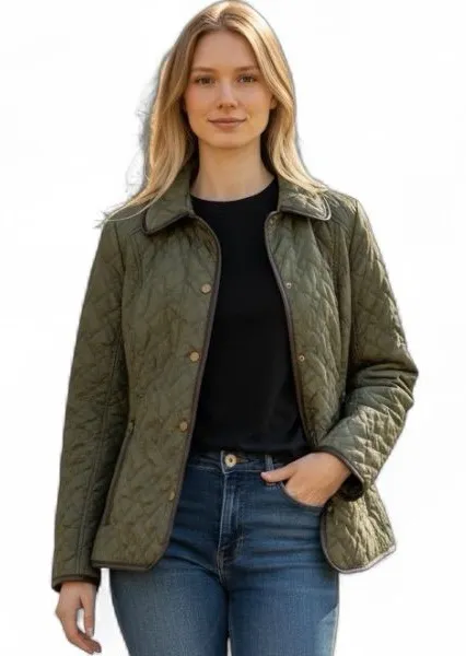 CHARTER CLUB GREEN QUILTED VEGAN LEATHER TRIM JACKET BARN COAT Size: S Excellent condition! PTP ap... Show more