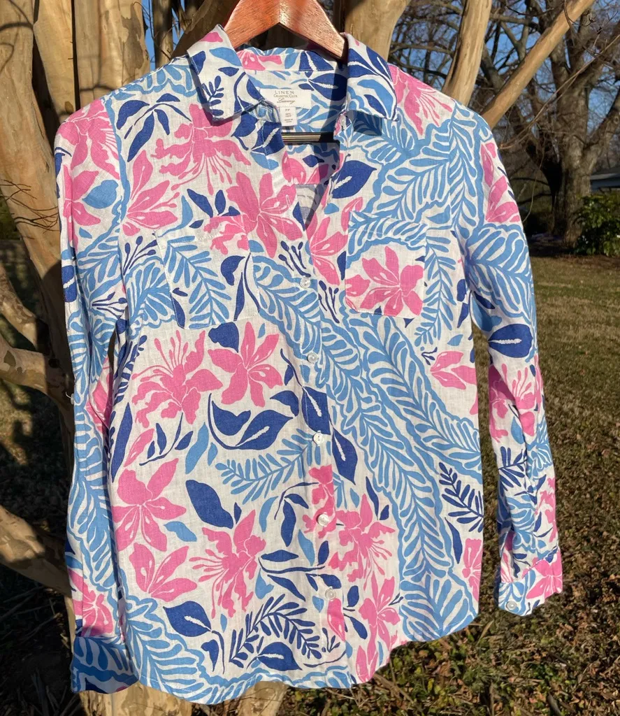 Charter Club Luxury 100% Linen Button-Up Shirt in Pink and Blue Floral Coastal Size undefined - $24 - From Grace