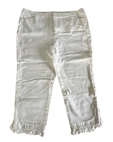 Measurements: • Waist: 19.5" • Hip: 16.5" • Inseam: 10" • Length: 20" Style: Capri Color: White Department: Women Type: Pants Material: Cotton, Rayon, Spandex, Nylon Leg Style: Straight Features: Ruffle Hem, Stretch, Pockets, Slimming, Crop Fabric Type: Twill Closure: Button Pattern: Solid Accents: Ruffle Occasion: Casual Inseam: 10 in Keywords: Charter Club, Capri pants, Crop pants, White pants, Size 16, Ruffle hem, Newport Slim Crop, Women's pants, Casual pants, Summer pants, Cotton blend, Comfortable pants, Cropped trousers, Slim fit • I ship within two business days. • All items come from a pet-free, smoke-free home. • Please compare the measurements to something you already own. Thank you for browsing, if you have any questions, let me know.