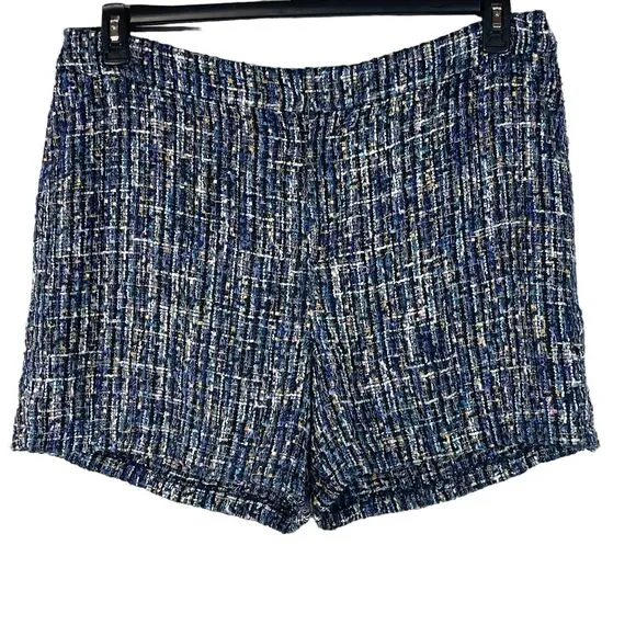Charter Club SZ 18 Tweed Shorts * Color Therapy Line * Pockets * High-Rise * Lined * No Stretch * The rear waistband is elastic. * Navy Blue Combo (Multi-color) * Zip-Fly with a Hook 'n Eye Closure Please check the measurements to ensure these are the right fit for you. Waist: 39" Inseam: 4 1/2" Rise: 13" Leg Opening Side to Side: 14 1/2" Measurements are approximate, laying flat and unstretched. Smoke free home.
