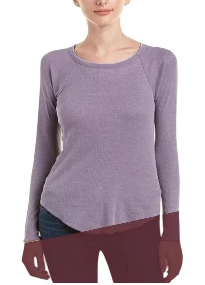 Chaser Purple Raisin Waffle Knit Long Sleeve Criss Cross Back Blouse Top Size M Elevate your casual... Show more