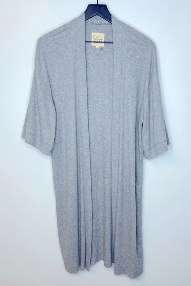 Chaser Short Sleeve Long Grey Cardigan Kimono Sweater Size XS/S Approximate measurements laid fla... Show more