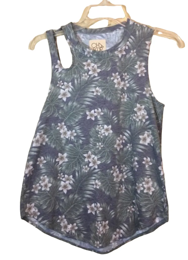 Good condition Brand- Chaser Material- 60% Cotton/40% Polyester Size- XS Color- Blue Floral Cut Out... Show more