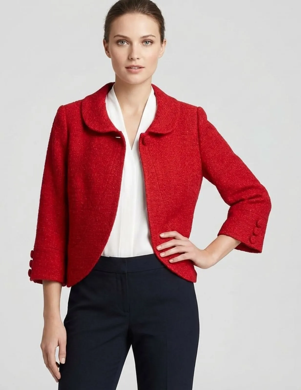 This blazer features a sleek 3/4 sleeve design and a fully lined interior for a polished, professional look. The size L fit and vibrant color make it a versatile choice for both work and casual outings, adding a bold touch to any wardrobe. *Product color may slightly vary due to photographic lighting sources or your monitor settings *Pet friendly home *Smoke free home *I try my best to provide an accurate description of each item, but may miss something, so please check the pics and description, if you still have any questions, do not hesitate to contact me. *Items may need to be ironed or pressed due to storage tags: Career, office attire, polished, mature, sophisticated, business, corporate, careerwear, businesscore, work clothes, dress code, Women's Blazer, Stylish Jacket, Workwear, Casual Jacket, Professional, Tailored, Business Casual, Fashionable, Versatile, Outerwear, Modern Style, edgy business chic, corpcore, officecore, lawyer, secretary, boardroom chic, Office Siren