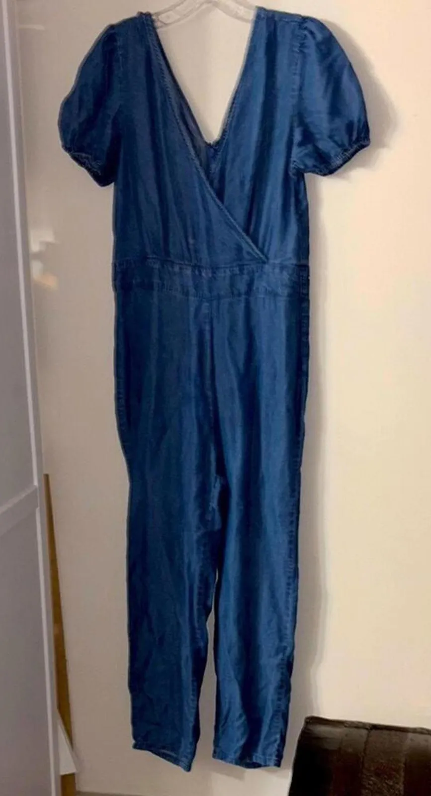 Chelsea and Violet brand. Color: blue V-neck, cross wrap, front style, long leg, pants, jumpsuit, ro... Show more