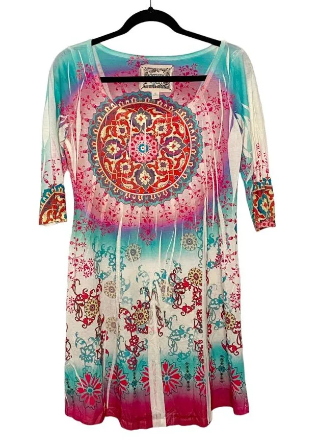 Excellent preloved condition. Chelsea & Violet tunic dress. Open pleated. Very colorful. No rips or... Show more