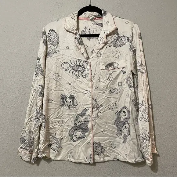 Chelsea Peers White Astrology Print Button Sleep Shirt Womens S Satin Buttons - $12 - From Lisa