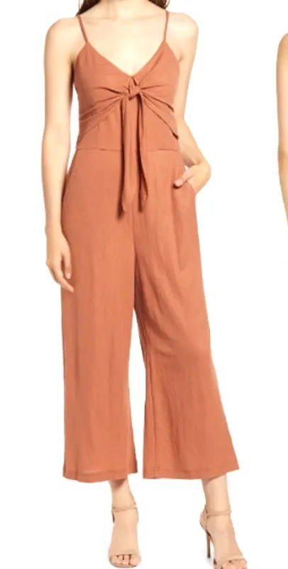 Chealsea28 Summer Sleeveless Tie Front Wide Leg Jumpsuit in Burnt Orange. Size Large. Good preowned... Show more
