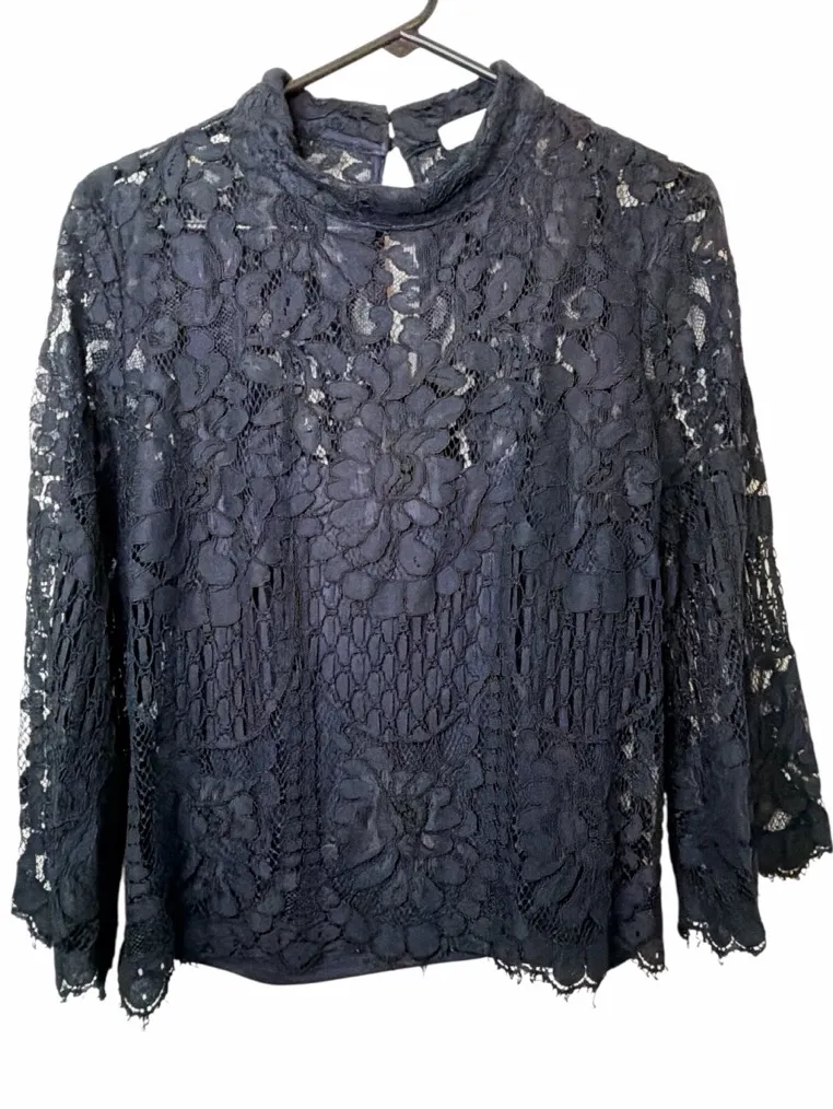 Chelsea 28 Navy Lace Bell Sleeve Top Blue Size L - $35 - From Shannon