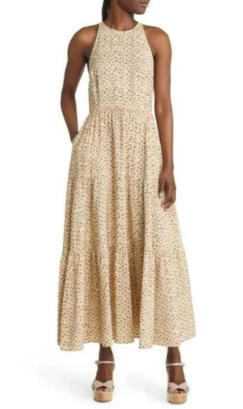 Chelsea28 Tiered Maxi Dress in Beige Angora Animal Dots Brown Size M - $39 - From Katherine